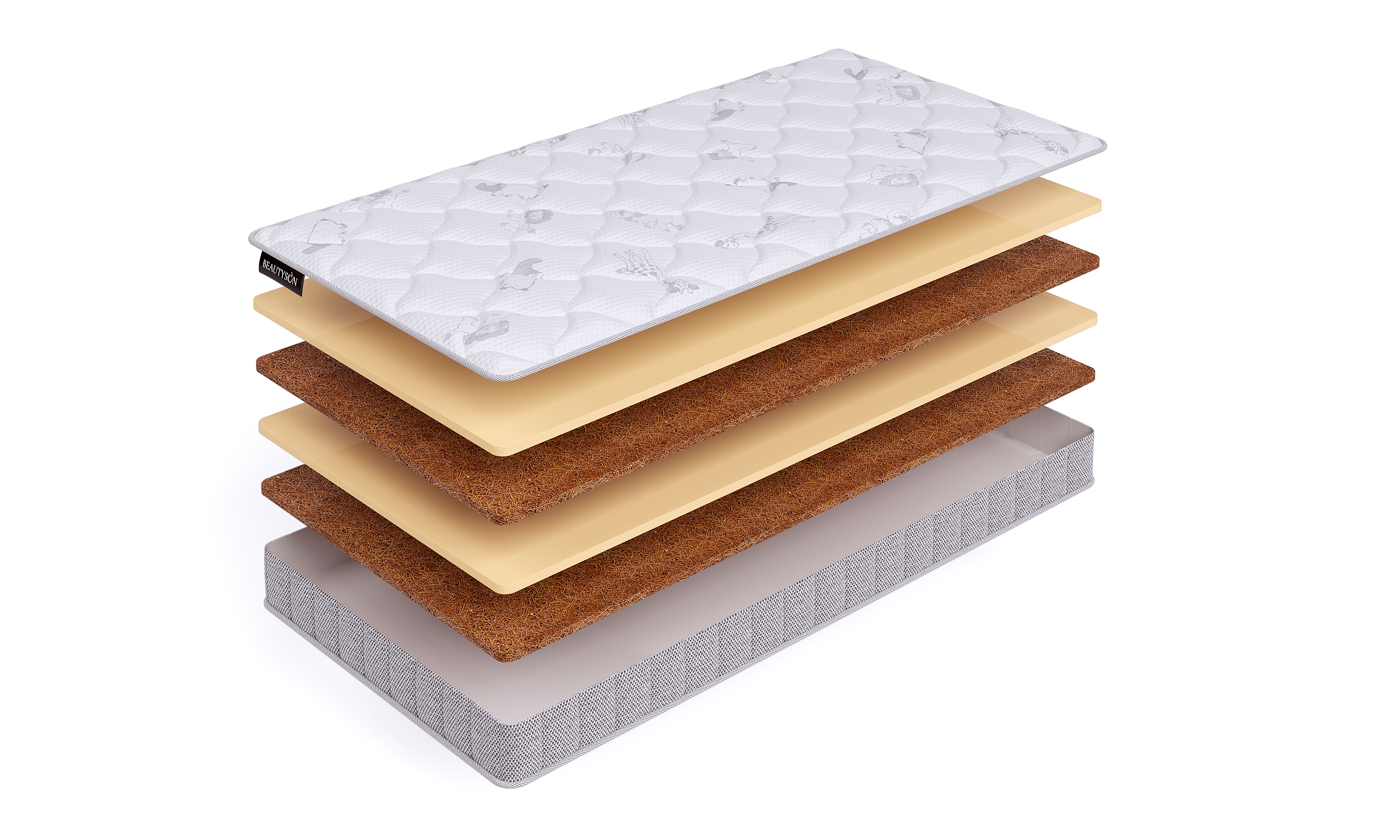 Беспружинный детский матрас Beautyson Baby Mini Zebra выполнен из натуральных, экологичных материалов.